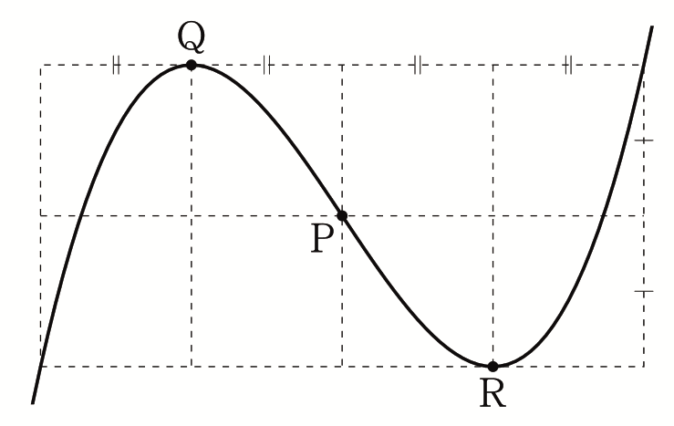 図のPが3次曲線の対称の中心となる「変曲点」となる。そしてQ、Rが極値となる。