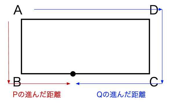つまり、P、Qが進んだ距離の合計がABCDの長さと一致すればいいということです。したがって