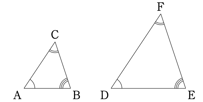 まず、三角形の相似について簡単に説明しておきます。詳しい内容は教科書で必ず確認してください。