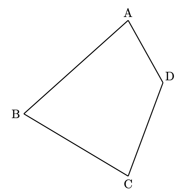 今回の作図はかなり難しい問題でした。下図のような四角形ABCDにおいて、条件を満たす点Pの作図ですが、Pがどのような点なのかをすぐにイメージできなかった人が多かったと思います。