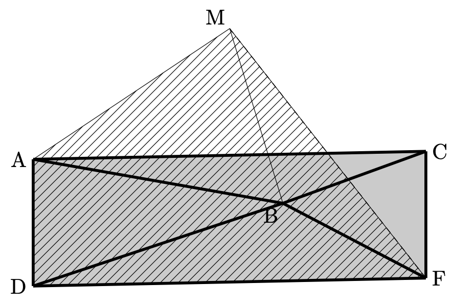 底面の四角形$\mathrm{ADFM}$と長方形$\mathrm{ADFC}$の面積を考えましょう。