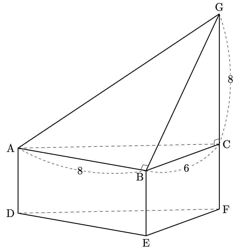 後ほど触れますが四角錐 $\mathrm{B-ADFC}$ は比較的簡単に体積が求められます。