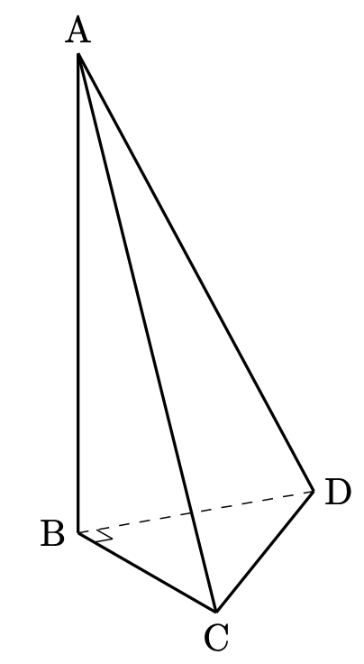 ここで、三角錐$\mathrm{A}-\mathrm{BCD}$ の体積 $V$ は