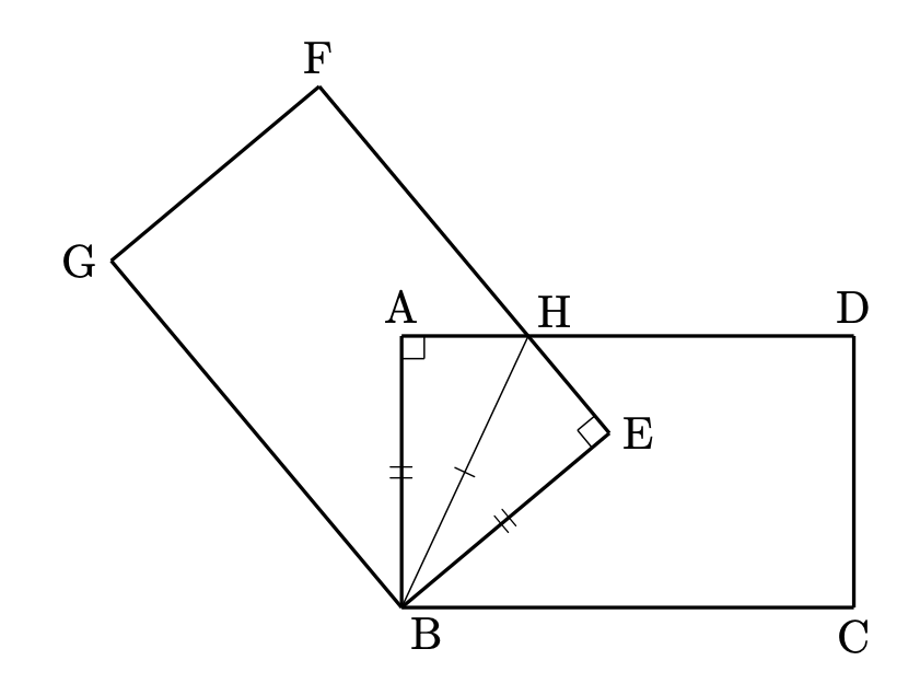 まず、図にも示したように、2つの直角三角形 $\triangle \mathrm{ABH}$ と $\triangle \mathrm{EBH}$ の合同はすぐに見抜けなければなりません。